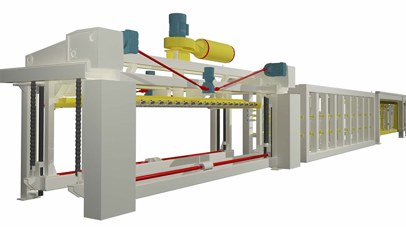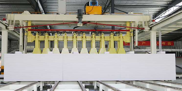 加气板材经过蒸压釜,坯体获得最终����� �������Ƴ������������ �������Ƴ�������的强度和性能。出釜后的产品,通过东岳最新研发的掰����� �������Ƴ����������� �������Ƴ������板打包系统,不但提高产品合格率同时解决了����� �������Ƴ������������ �������Ƴ�������砌块、板材同时分离的难题。