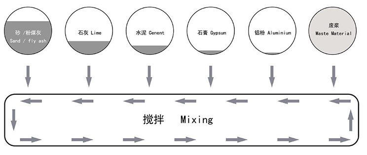 料浆、胶结料、石膏和铝粉都分别通过相应自动����� �������Ƴ������������ �������Ƴ�������计量称计量,后在搅拌机内高����� �������Ƴ����������� �������Ƴ�������速搅拌,浇注到模箱后进行气泡梳理。整个体系由����� �������Ƴ������������ �������Ƴ������� PLC 系统进行自动控制,保����� �������Ƴ����������� �������Ƴ�������证工序的精确和高效。
